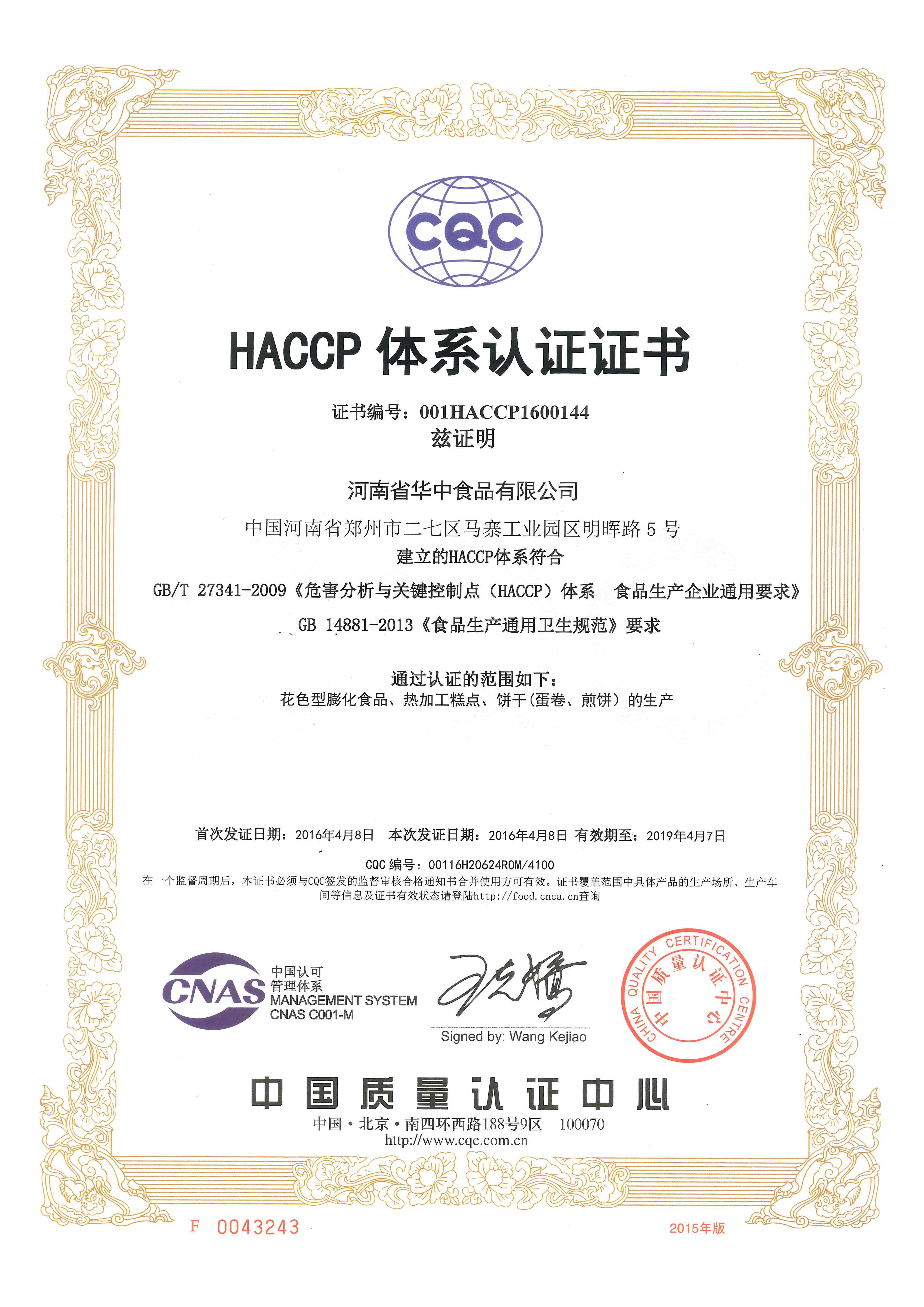 熱烈慶祝華中食品集團(tuán)通過(guò)HACCP認(rèn)證