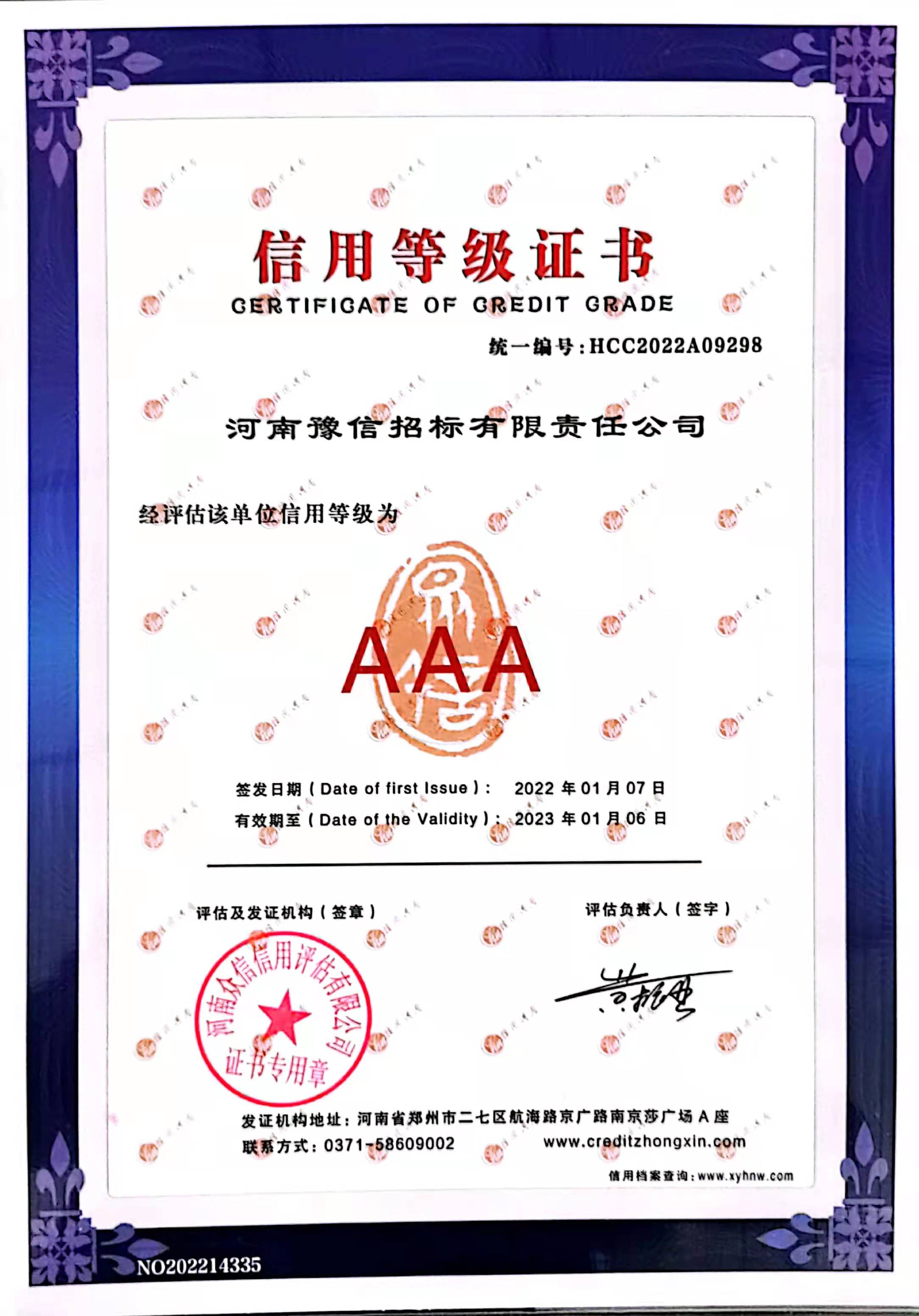工程招標(biāo)代理機(jī)構(gòu)信用等級(jí)證書 -