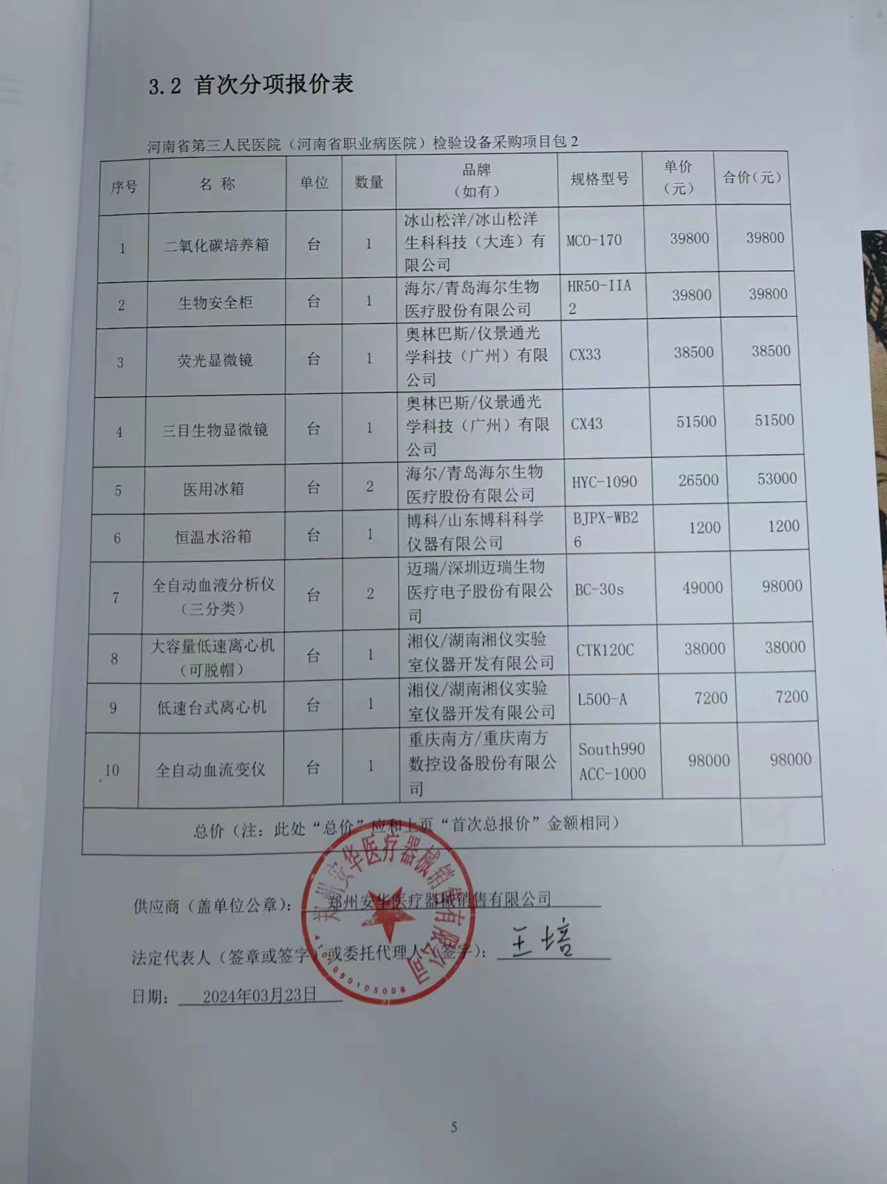 河南省第三人民醫(yī)院(河南省職業(yè)病醫(yī)院)檢驗設備采購項目包2 | 鄭州安華醫(yī)療器械銷售有限公司 | 河南省鄭州市航空港經(jīng)濟綜合實驗區(qū)古城三路37號美創(chuàng)國際科技產業(yè)園B5-1-02號2層-3層 | 418000.00 | 金額 | 元 | ||||