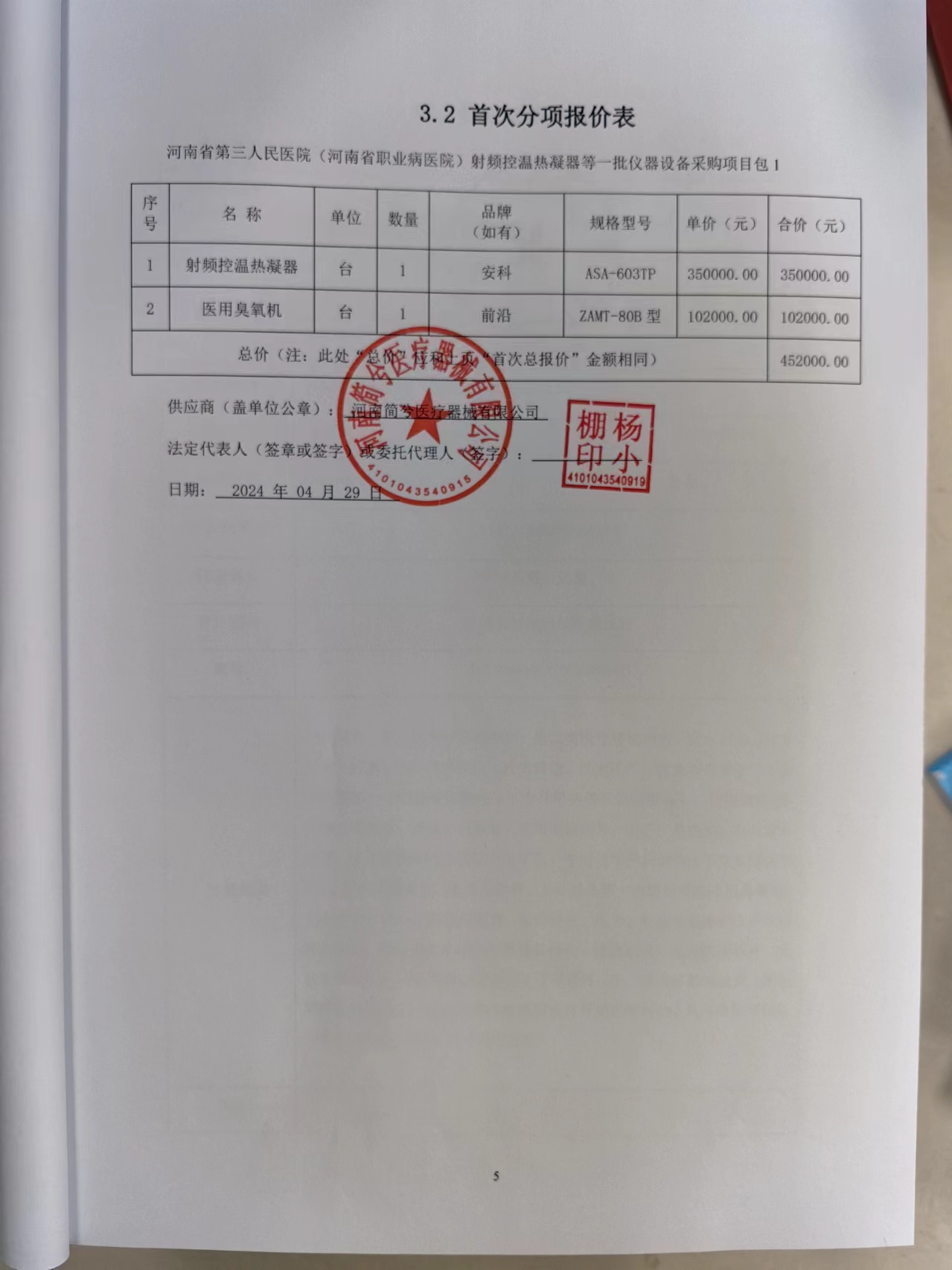 2、采購(gòu)項(xiàng)目名稱:河南省第三人民醫(yī)院(河南省職業(yè)病醫(yī)院)射頻控溫?zé)崮鞯纫慌鷥x器設(shè)備采購(gòu)項(xiàng)目