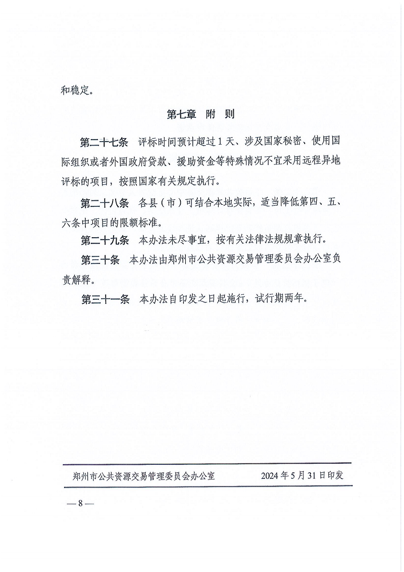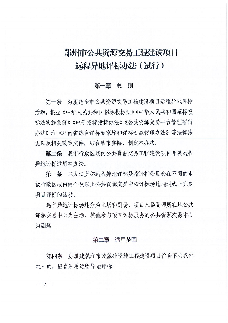 關(guān)于印發(fā)《鄭州市公共資源交易工程建設(shè)項(xiàng)目遠(yuǎn)程異地評(píng)標(biāo)辦法》的通知