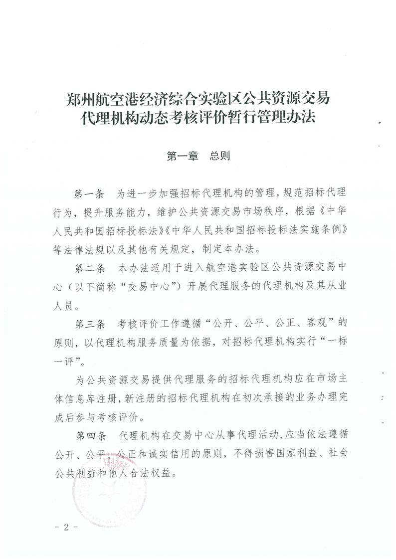 鄭州航空港經(jīng)濟(jì)綜合實驗區(qū)公共資源交易代理機構(gòu)動態(tài)考核評價暫行管理辦法