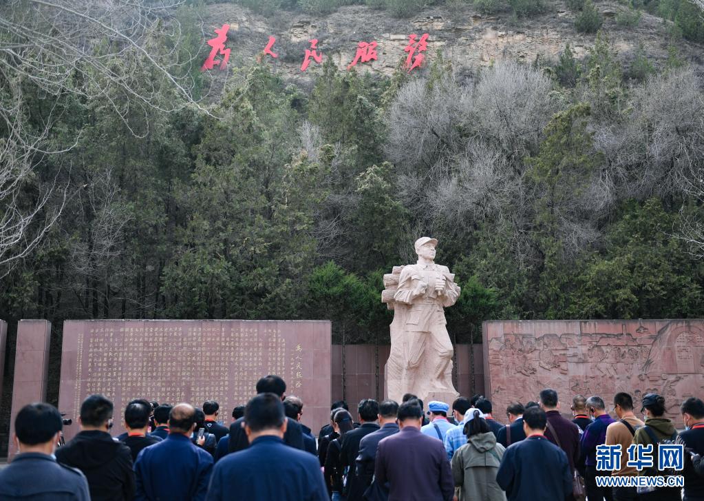 2021年3月29日,參觀者在延安市張思德廣場進行現(xiàn)場教學活動。新華社記者 張博文 攝