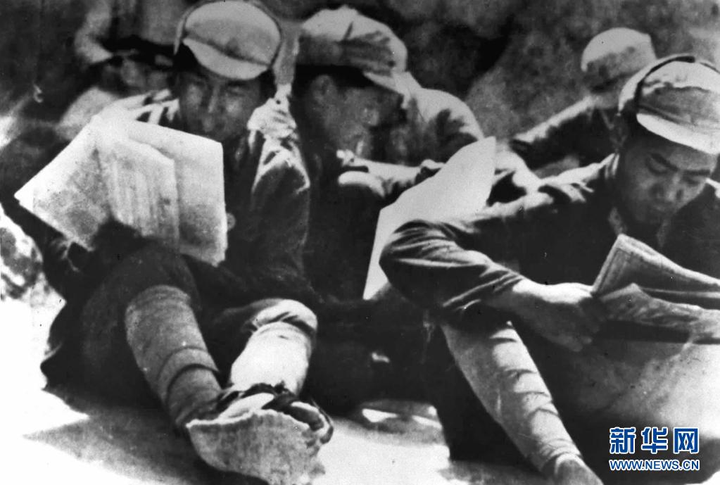 中國人民抗日軍政大學的學員在學習整風文件(資料照片)。新華社發(fā)