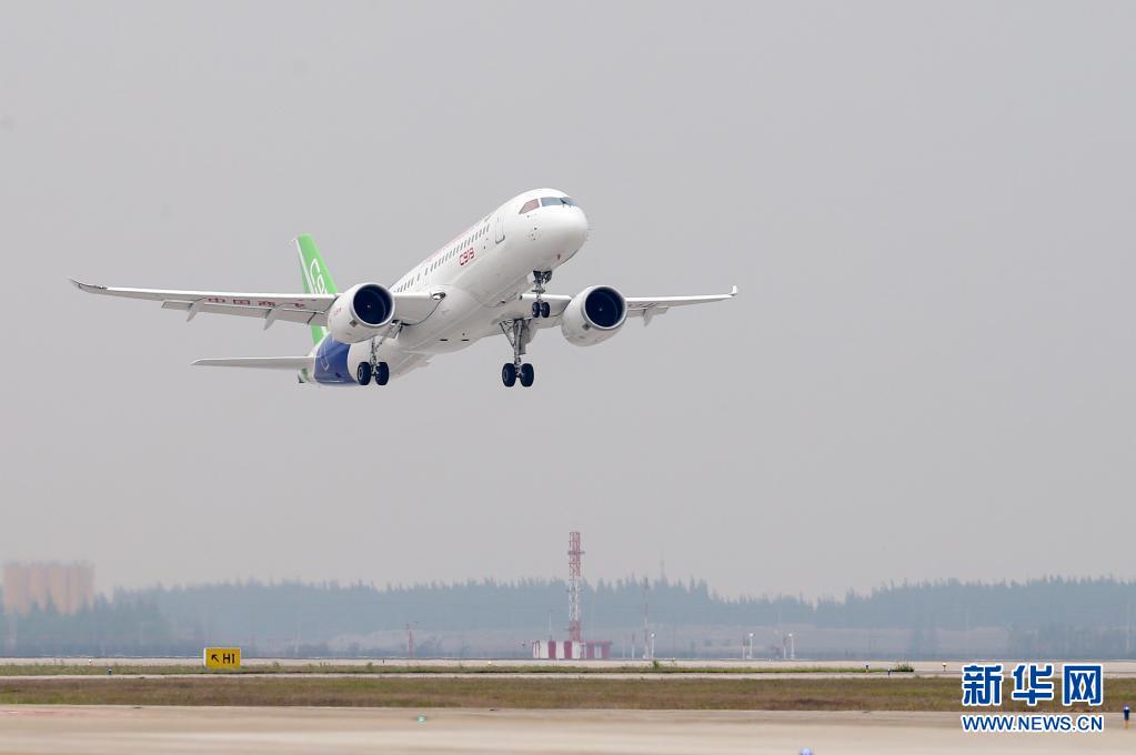 2017年5月5日,國產(chǎn)大型客機C919在上海浦東國際機場首飛成功。新華社記者 丁汀 攝