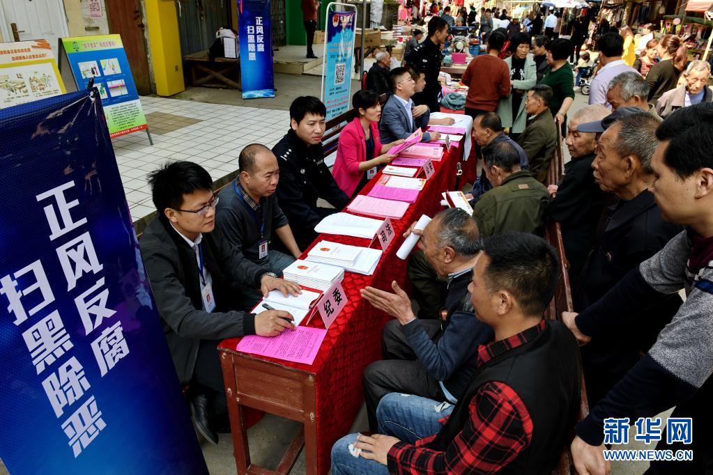 2020年1月6日,福建省福州市永泰縣公安干警在掃黑除惡專項(xiàng)斗爭宣傳活動(dòng)上向群眾介紹專項(xiàng)斗爭成果。新華社記者 張國俊 攝