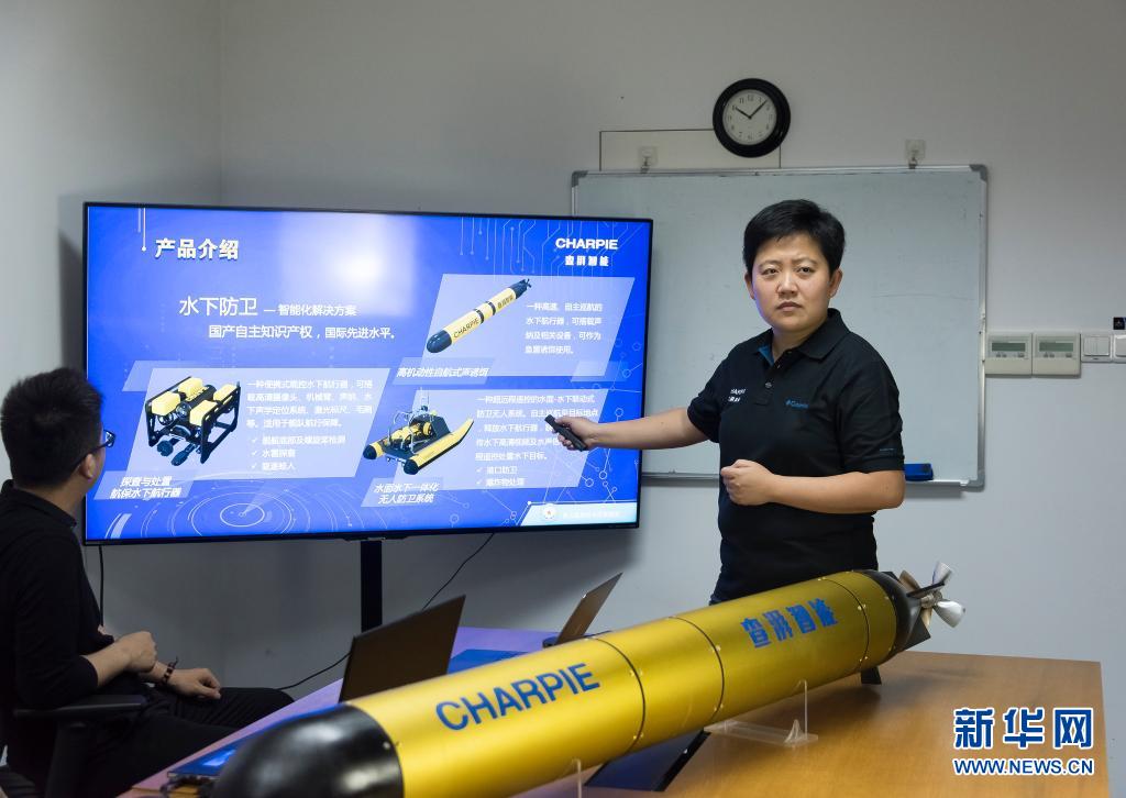 付斌向客戶介紹水下機器人產(chǎn)品(資料照片)。新華社發(fā)