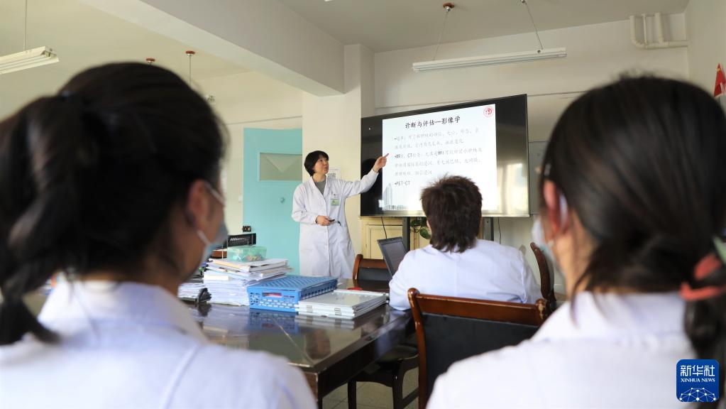 天津市中心婦產(chǎn)科醫(yī)院婦產(chǎn)專業(yè)副主任醫(yī)師饒陽為甘肅甘南藏族自治州人民醫(yī)院婦產(chǎn)科的醫(yī)生進(jìn)行培訓(xùn)(1月15日攝)。新華社記者 張睿 攝