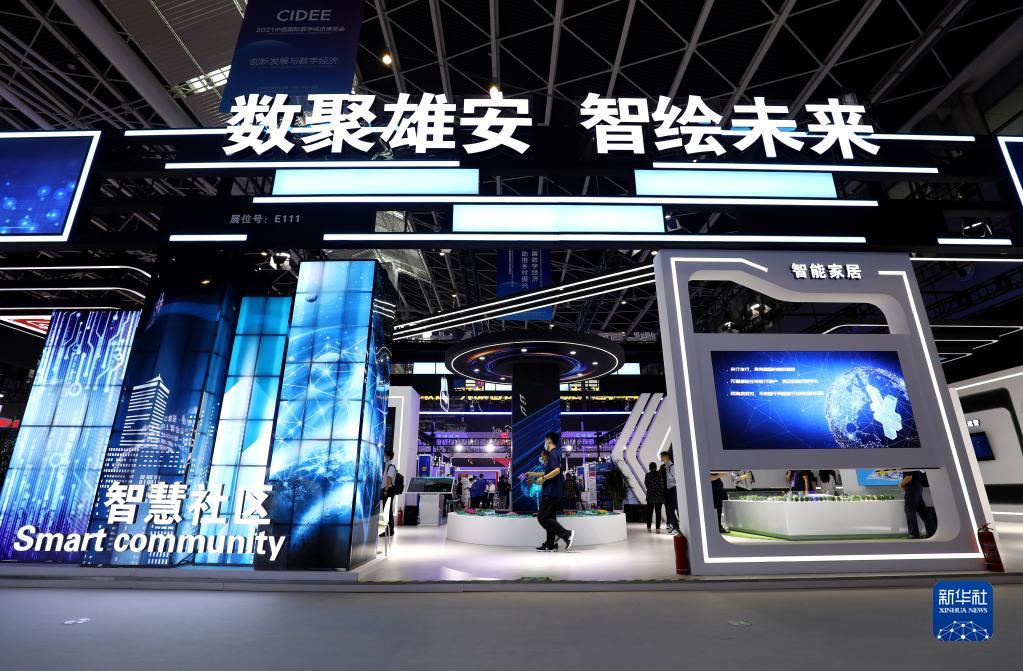 9月6日,參觀者在2021中國國際數(shù)字經(jīng)濟博覽會上參觀“數(shù)聚雄安 智繪未來”雄安展區(qū)。新華社發(fā)(梁子棟 攝)