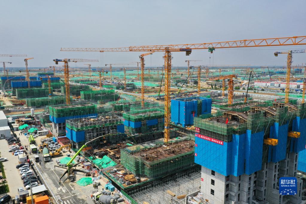 這是雄安新區(qū)容西片區(qū)建設(shè)現(xiàn)場(7月3日攝,無人機照片)。新華社記者 楊世堯 攝