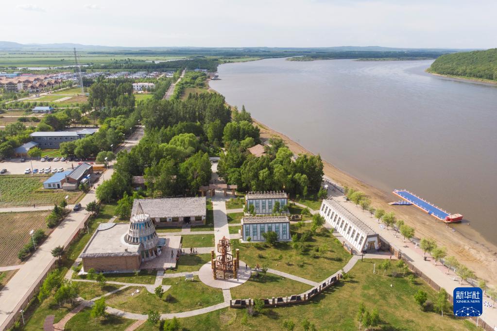 這是6月23日拍攝的黑龍江省雙鴨山市饒河縣四排赫哲族鄉(xiāng)四排村赫哲風情園(無人機照片)。新華社記者 張濤 攝
