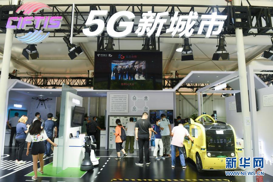 9 月 7 日,觀眾在 2020 年中國國際服務(wù)貿(mào)易交易會 5G 通信服務(wù)專題展區(qū)參觀。 2020 年中國國際服務(wù)貿(mào)易交易會 9 月 4 日至 9 日在北京舉行。新華社記者 魯鵬 攝