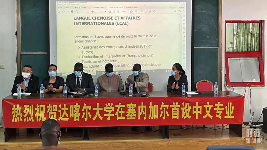 △2021年11月23日,塞內(nèi)加爾達喀爾大學(xué)在孔子學(xué)院舉行了中文專業(yè)推介暨新聞發(fā)布會,這標(biāo)志著中文教育正式進入塞內(nèi)加爾高等教育體系。(總臺記者韓蓄拍攝)