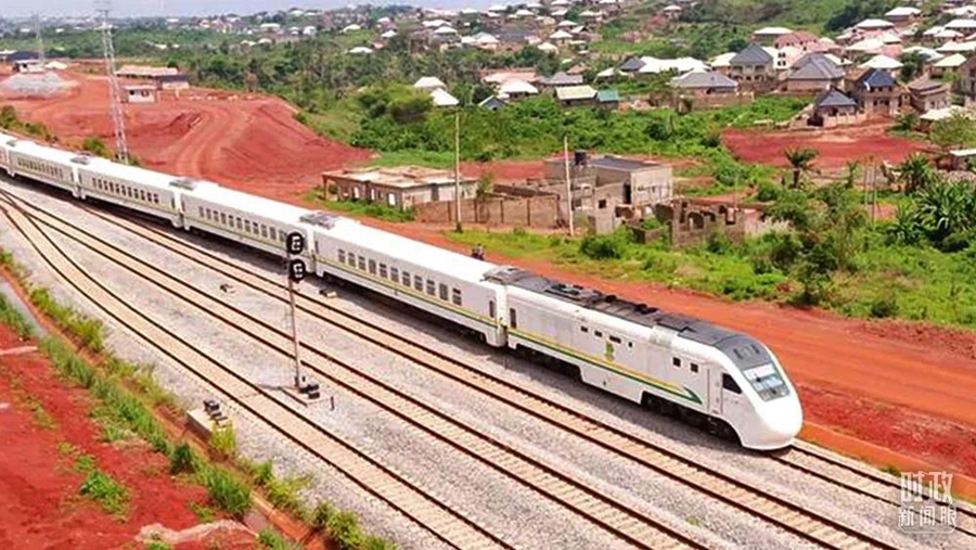 △2021年6月,由中企承建的尼日利亞拉伊鐵路正式通車運營。這是列車穿過當(dāng)?shù)鼐用裆鐓^(qū)。(資料圖)