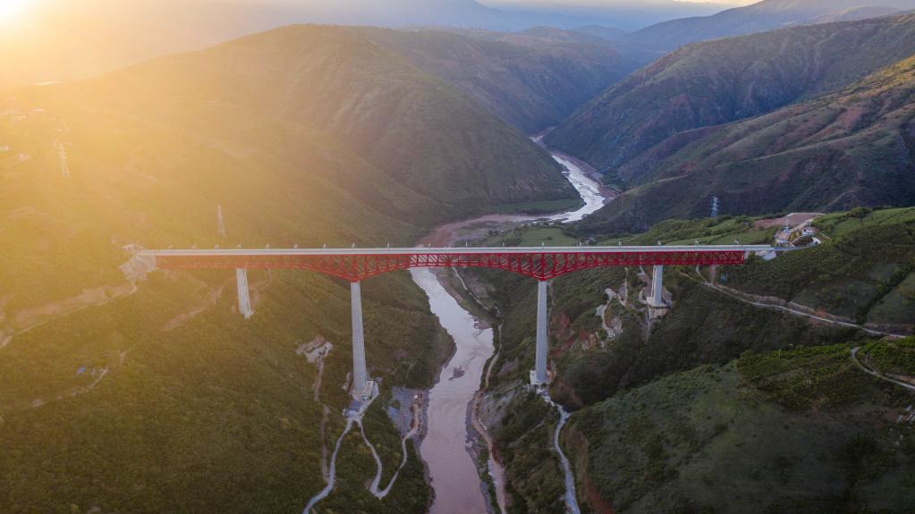 2021年9月27日拍攝的中老鐵路元江雙線(xiàn)特大橋。