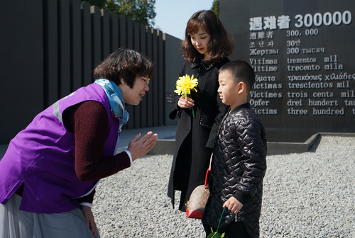 從2008年開始,來自美國、法國、韓國、日本等國的志愿者來到紀(jì)念館,用英語、法語、韓語、日語等向來自世界各地的參觀者講述南京大屠殺歷史,并在紀(jì)念館史學(xué)研究、文史資料翻譯、國際交流活動中發(fā)揮專長。