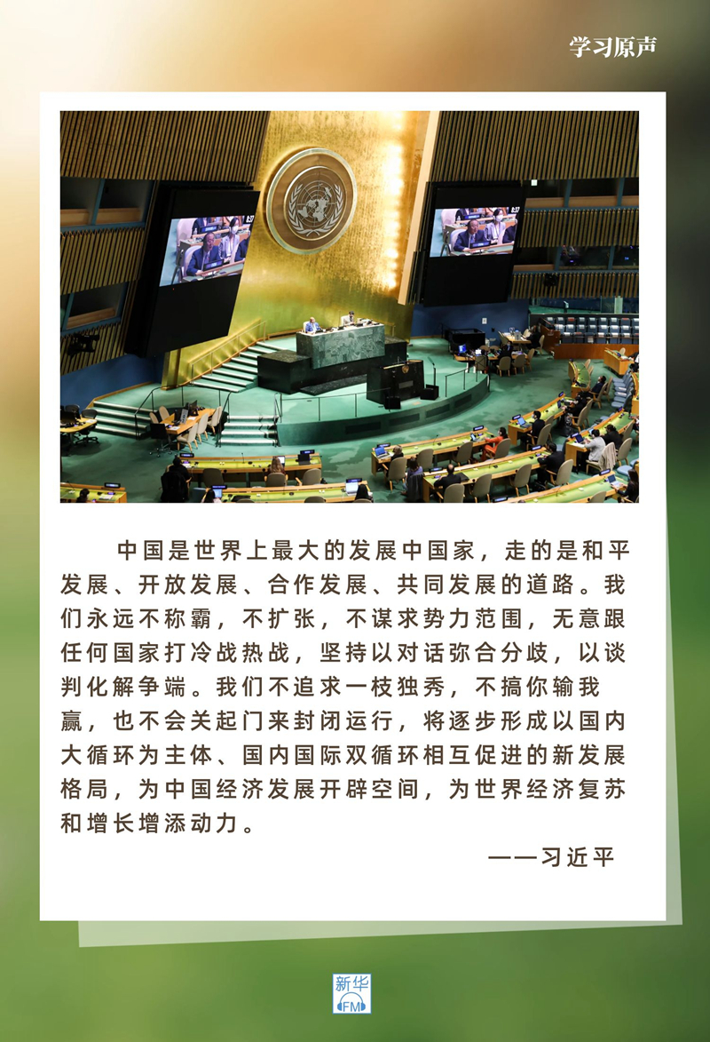 大道之行,天下為公。和平與發(fā)展是時(shí)代主題,也是不可抗拒的歷史潮流。中國(guó)將堅(jiān)定站在歷史正確的一邊,站在人類進(jìn)步的一邊,同世界各國(guó)攜手并肩,向著構(gòu)建人類命運(yùn)共同體光明未來不斷前進(jìn)。