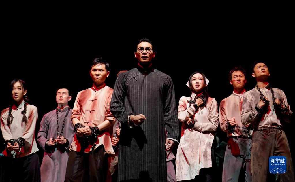 6月10日,上海歌舞團(tuán)演員在上海國際舞蹈中心大劇場演出舞劇《永不消逝的電波》。新華社記者 任瓏 攝