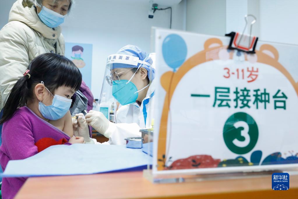 家長帶著孩子在北京新街口街道新冠疫苗接種點接種疫苗(12月9日攝)。新華社記者 張玉薇 攝
