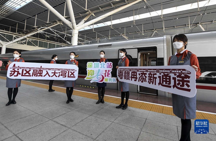 沐浴著虎年的陽(yáng)光,開通不久的贛深高鐵上,一列列火車飛馳而過。