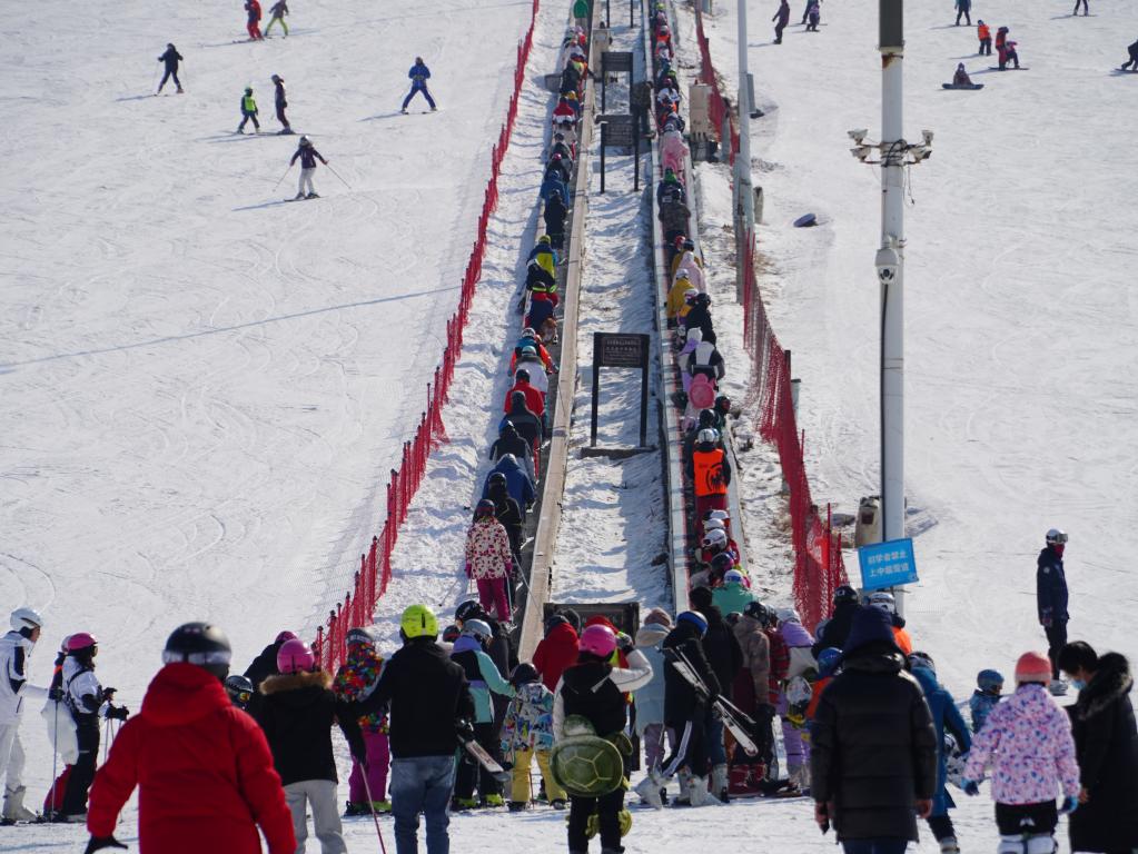 2022年2月17日,在沈陽怪坡國際滑雪場,非雙休日時游客也很多。新華社記者 崔師豪攝