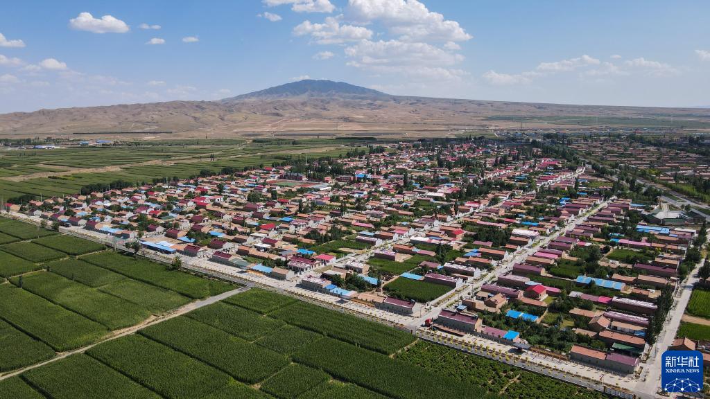 寧夏吳忠市紅寺堡區(qū)柳泉鄉(xiāng)永新村(2021年7月29日攝,無人機照片)。新華社記者 徐欽 攝