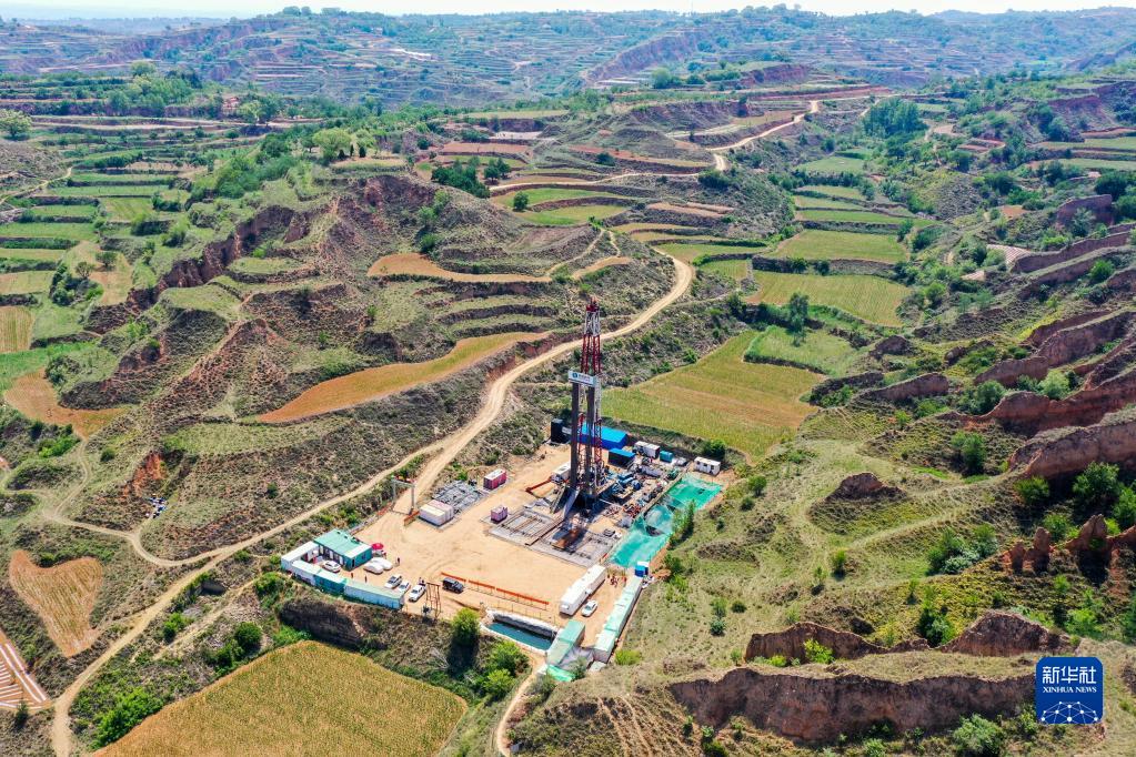 這是華新燃?xì)馍轿魉{(lán)焰煤層氣集團(tuán)有限責(zé)任公司位于山西省長(zhǎng)治市武鄉(xiāng)縣的一處鉆井現(xiàn)場(chǎng)(2021年6月22日攝,無人機(jī)照片)。新華社記者 曹陽(yáng) 攝