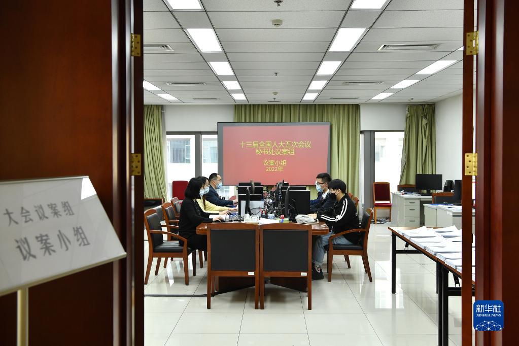 3月9日,十三屆全國人大五次會議秘書處議案組議案小組在工作中。新華社記者 李鑫 攝
