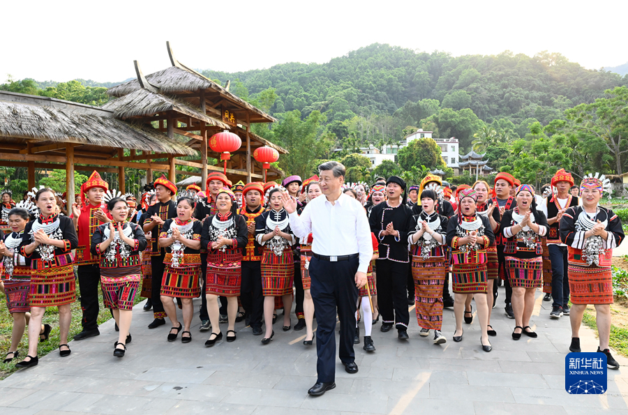 4月10日至13日,中共中央總書記、國家主席、中央軍委主席習(xí)近平在海南考察。這是11日下午,習(xí)近平在五指山市水滿鄉(xiāng)毛納村同村民們親切交流。新華社記者 謝環(huán)馳 攝