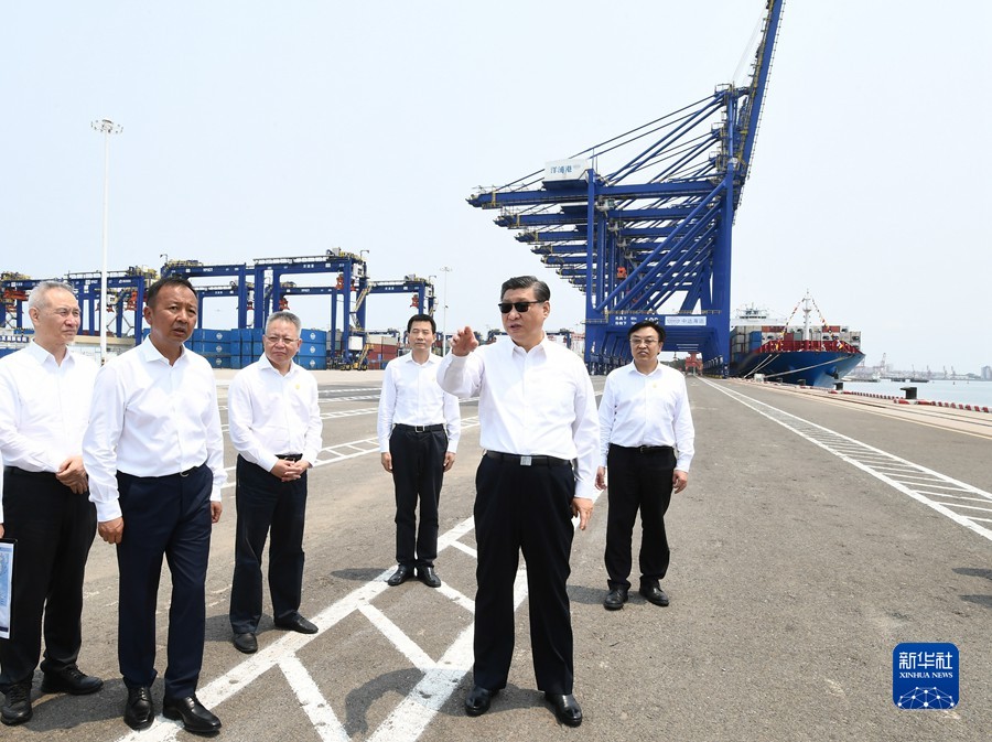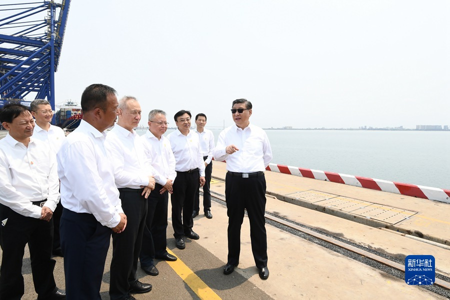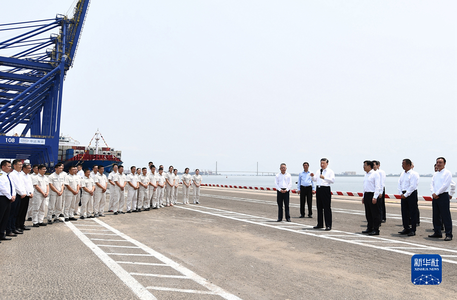 隨后,習(xí)近平來到洋浦國際集裝箱碼頭小鏟灘港區(qū),了解港口建設(shè)發(fā)展情況,同現(xiàn)場作業(yè)人員、掛職干部代表等親切交流。習(xí)近平強(qiáng)調(diào),振興港口、發(fā)展運輸業(yè),要把握好定位,增強(qiáng)適配性,堅持綠色發(fā)展、生態(tài)優(yōu)先,推動港口發(fā)展同洋浦經(jīng)濟(jì)開發(fā)區(qū)、自由貿(mào)易港建設(shè)相得益彰、互促共進(jìn),更好服務(wù)建設(shè)西部陸海新通道、共建“一帶一路”。他指出,黨中央選派干部來自由貿(mào)易港掛職,既體現(xiàn)了黨中央對自由貿(mào)易港建設(shè)的關(guān)心和支持,也是對干部的培養(yǎng)鍛煉,要發(fā)揮掛職干部的積極作用,讓他們在基層一線增長才干。