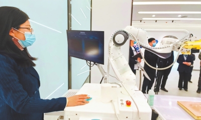 4月14日,濮陽(yáng)大數(shù)據(jù)與人工智能研究院內(nèi),科研人員正在操作人工智能醫(yī)療儀器設(shè)備。