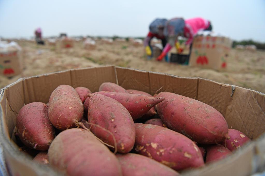 汕尾碣石鎮(zhèn)滴水村,剛收獲的甘薯裝滿紙箱等待運(yùn)輸。新華社記者梁旭攝