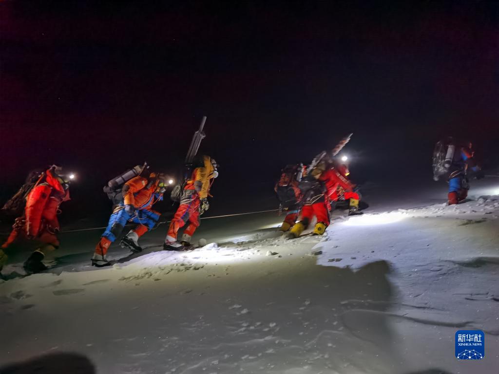 5月4日凌晨,珠峰科考隊員從突擊營地出發(fā),向珠穆朗瑪峰峰頂發(fā)起沖刺。新華社特約記者 索朗多吉 攝