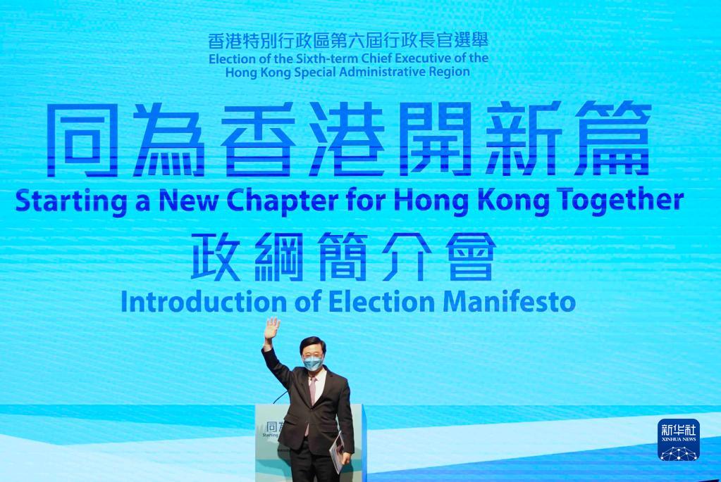 香港特區(qū)第六屆行政長官選舉候選人李家超舉行政綱簡(jiǎn)介會(huì)(4月29日攝)。新華社記者 呂小煒 攝
