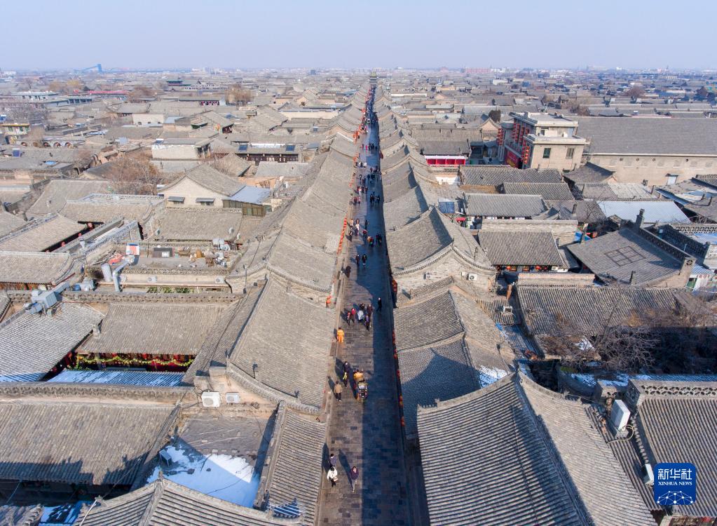 這是2月8日拍攝的平遙古城一角(無人機(jī)照片)。新華社記者 楊晨光 攝