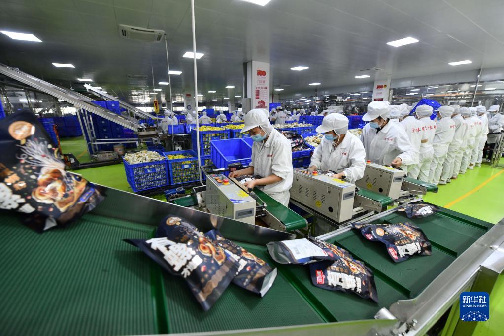 在廣西柳州市螺螄粉生產集聚區(qū)的廣西善元食品有限公司螺螄粉生產車間,工人在生產線上包裝產品(1月6日攝)。新華社記者 黃孝邦 攝