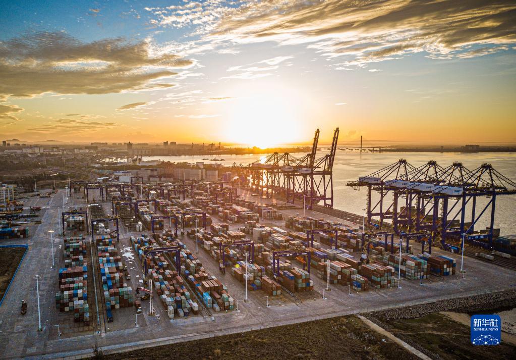 在海南洋浦經(jīng)濟開發(fā)區(qū)拍攝的洋浦國際集裝箱碼頭(2021年5月26日攝,無人機照片)。新華社記者 蒲曉旭 攝