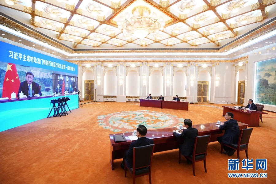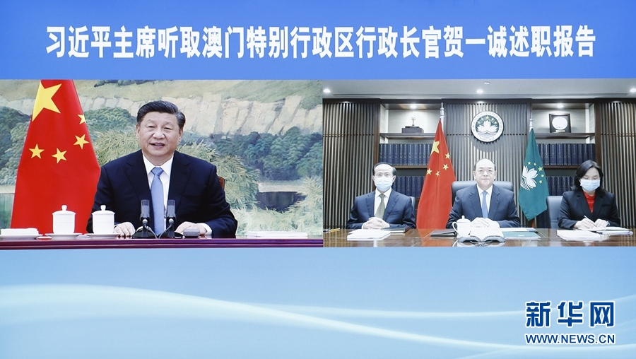 1月27日,國家主席習(xí)近平在北京以視頻連線方式聽取了澳門特別行政區(qū)行政長官賀一誠2020年度的述職報(bào)告。新華社記者 王曄 攝