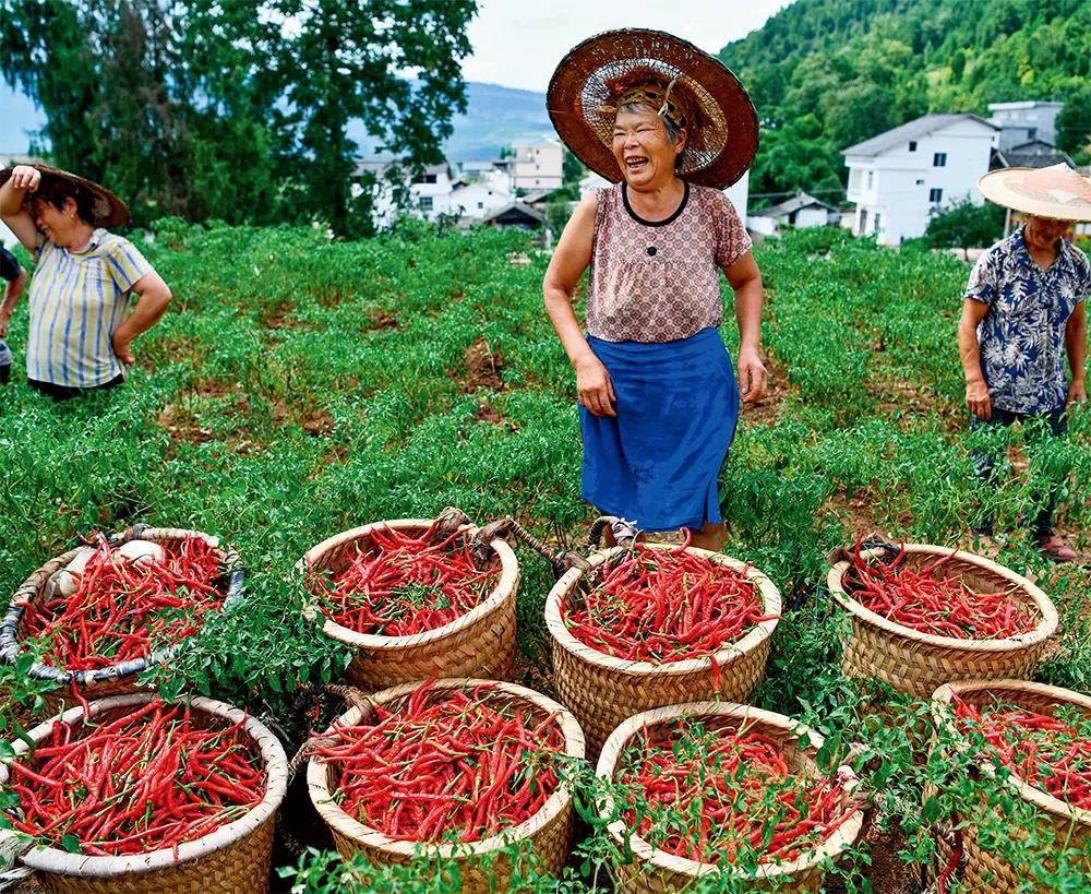 ▲ 貴州省思南縣塘頭鎮(zhèn)青杠壩村,村民們采摘用作生產(chǎn)糟辣椒的紅辣椒(8月12日攝)楊文斌攝