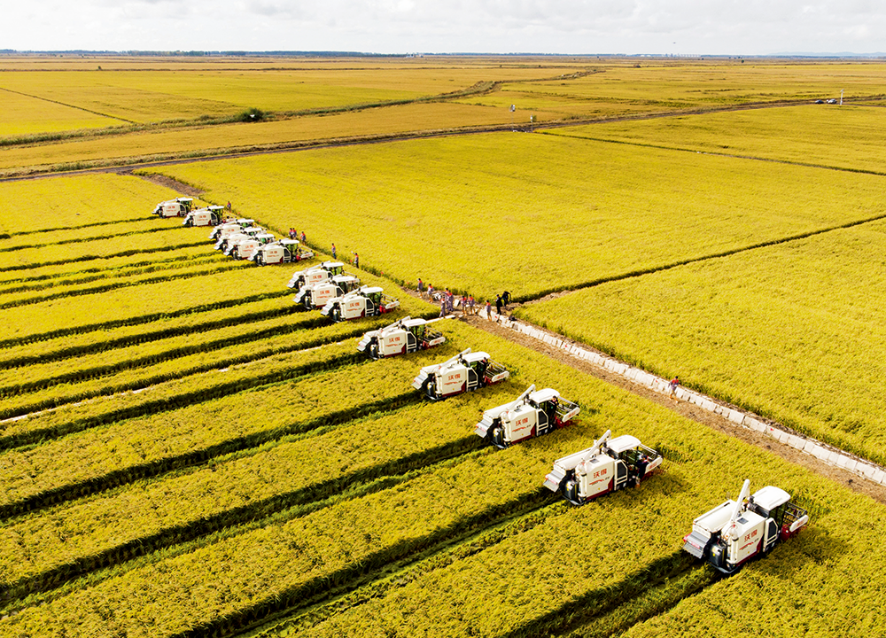 ▲ 2020年9月22日,中國農(nóng)民豐收節(jié),黑龍江省富錦市萬畝水稻公園開鐮儀式現(xiàn)場 張濤攝