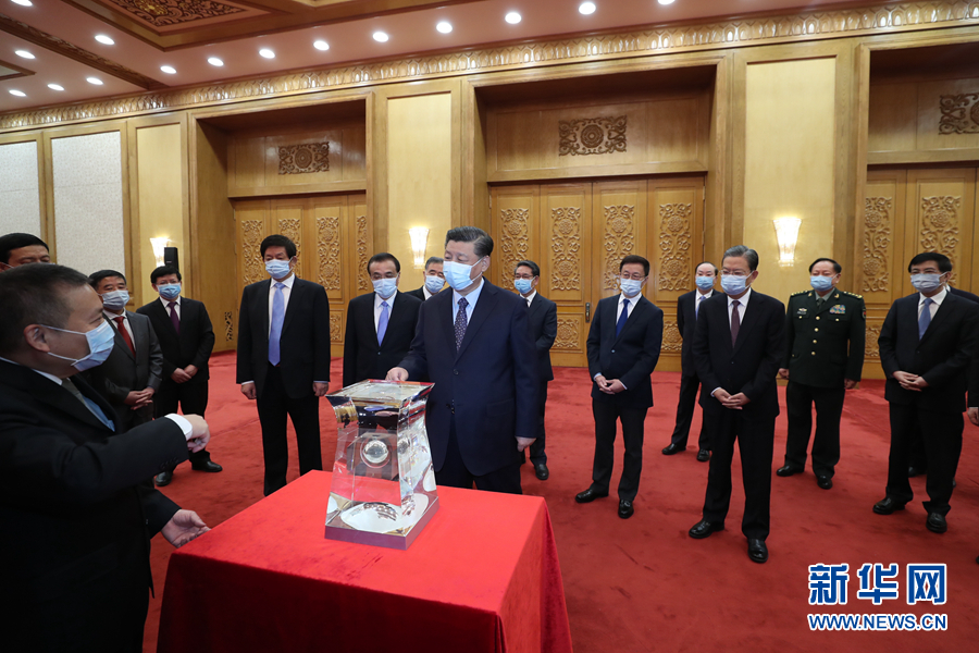 習近平在會見探月工程嫦娥五號任務(wù)參研參試人員代表并參觀月球樣品和探月工程成果展覽時強調(diào)