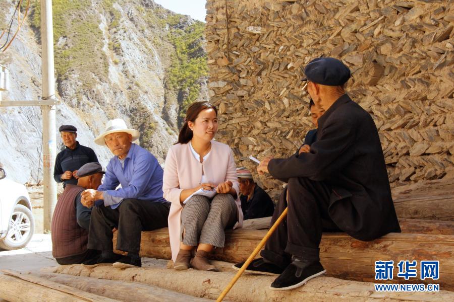 甘肅省甘南藏族自治州舟曲縣扶貧辦副主任張小娟(右二)在下鄉(xiāng)時(shí)向群眾了解情況(2018年4月攝)。2019年10月7日,時(shí)任縣扶貧辦副主任的張小娟在完成曲告納鎮(zhèn)上大年村脫貧攻堅(jiān)縣級抽樣調(diào)查工作后,返程途中所乘車輛不慎墜江,因公殉職。新華社發(fā)