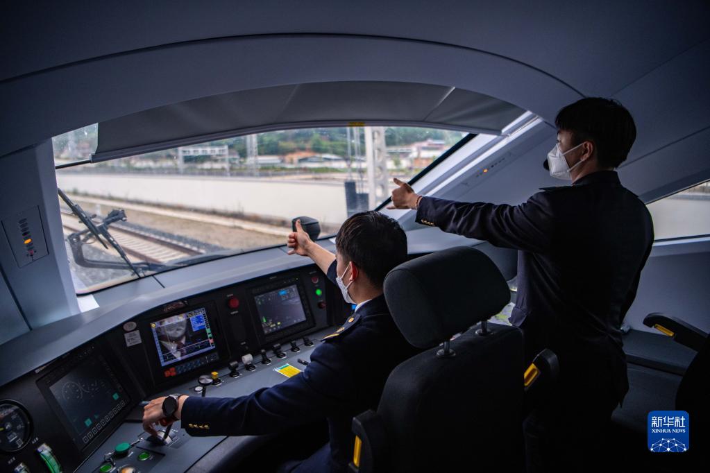 列車司機駕駛復興號列車行駛在中老鐵路上(2022年6月1日攝)。新華社記者 江文耀 攝