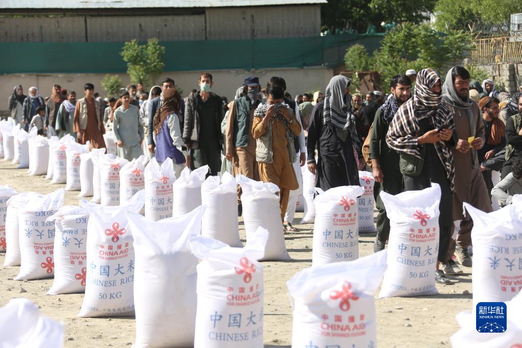 阿富汗民眾在首都喀布爾領取中國援助的糧食(2022年4月23日攝)。新華社發(fā)(塞夫拉赫曼·薩菲攝)