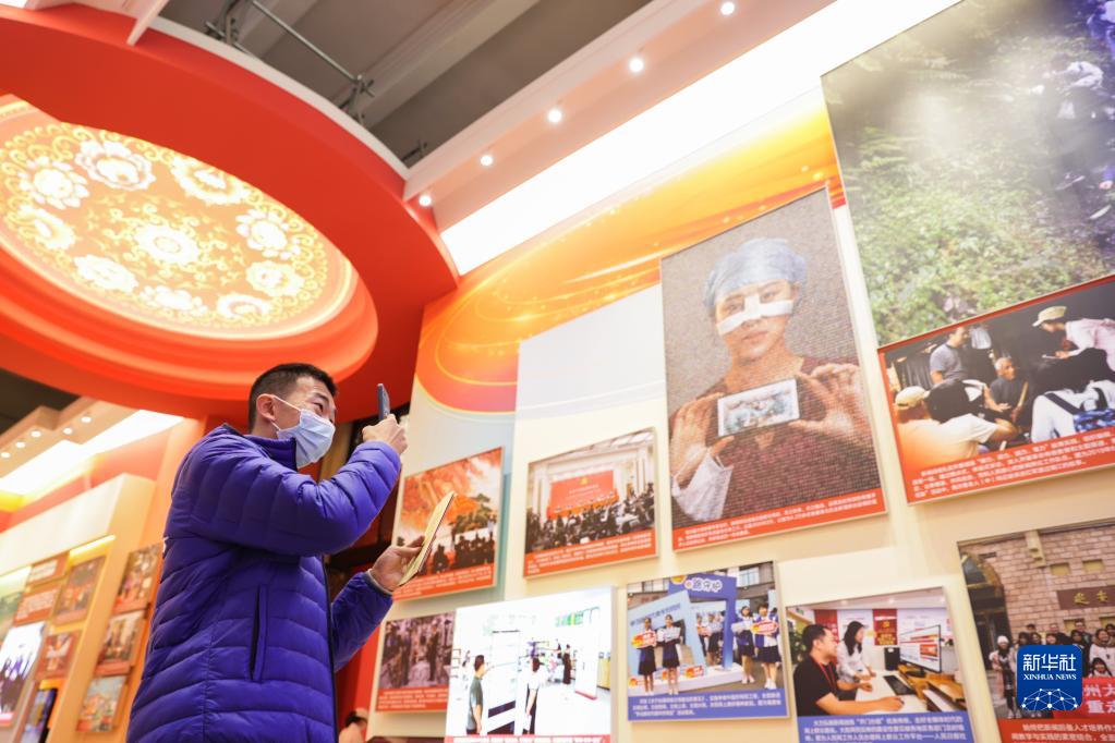 “這組書(shū)柜展示了黨的創(chuàng)新理論重要著作及研究成果、近年來(lái)重點(diǎn)主題出版物,這組博古架展示了70余件代表性非遺作品和文創(chuàng)精品……”在北京展覽館展出的“奮進(jìn)新時(shí)代”主題成就展上,跟隨講解員的生動(dòng)講述,參觀精彩紛呈的實(shí)物展陳和圖文并茂的全媒展示,一幅新時(shí)代文化建設(shè)的宏闊畫(huà)卷在人們眼前徐徐展開(kāi)。