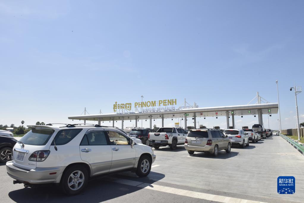 車輛在柬埔寨首都金邊的金港高速公路入口處排隊(2022年11月7日攝)。新華社記者 吳長偉 攝