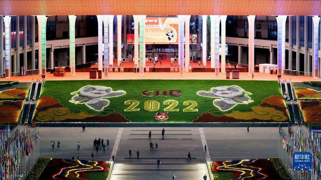 這是2022年11月5日拍攝的第五屆中國國際進口博覽會舉辦地國家會展中心(上海)夜景。新華社記者 劉穎 攝