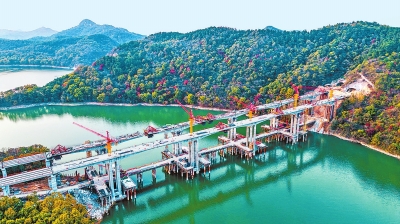 “作為許信高速關(guān)鍵性控制工程之一,溱頭河大橋左幅全長517米,右幅全長547米,跨越飲用水水源二級保護區(qū)薄山湖水庫,且與薄山1號隧道橋隧相連,施工工藝復雜、技術(shù)環(huán)保標準嚴格,具有相當大的挑戰(zhàn)性?!痹S信高速8標項目經(jīng)理王作恒說,施工前,項目部多次組織專家論證,對設(shè)計進行優(yōu)化。同時,加大施工力量投入,將流水作業(yè)改為平行作業(yè),確保了溱頭河主橋高質(zhì)量按時合龍。