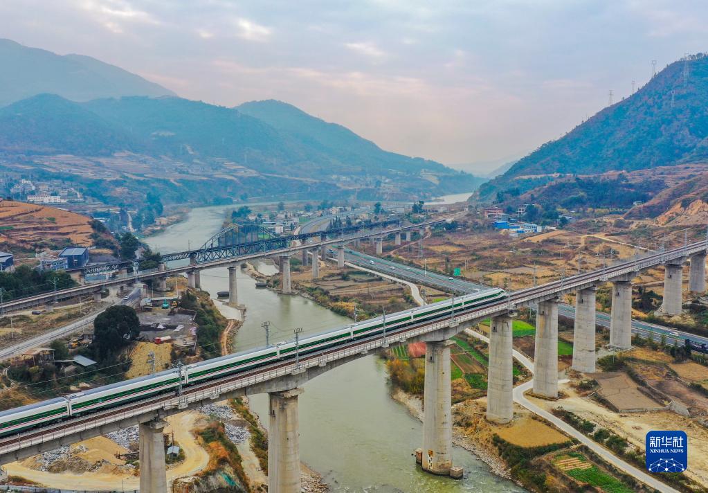 2022年12月26日,蜿蜒千里的新成昆鐵路全線貫通運營。復(fù)興號動車組從成都南站發(fā)出,沿著現(xiàn)代化的鐵路,奔馳在崇山峻嶺間。