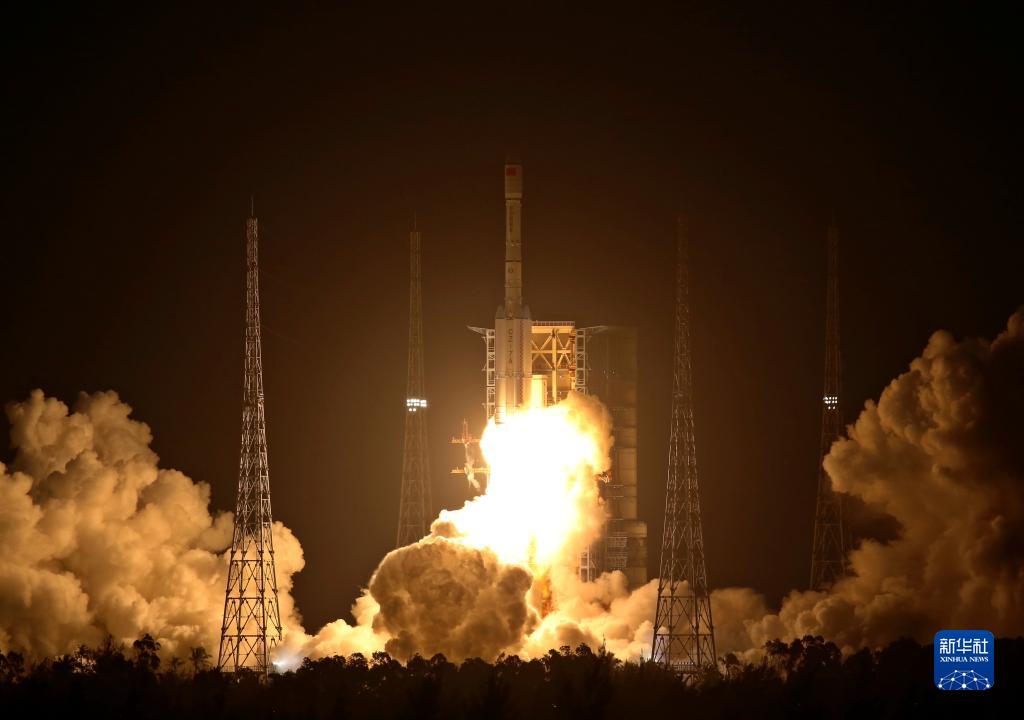 2021年12月23日18時12分,我國在文昌發(fā)射場用長征七號改運載火箭,成功將試驗十二號衛(wèi)星01星、02星發(fā)射升空。衛(wèi)星順利進入預(yù)定軌道,發(fā)射任務(wù)獲得圓滿成功。新華社發(fā)(胡煦劼 攝)